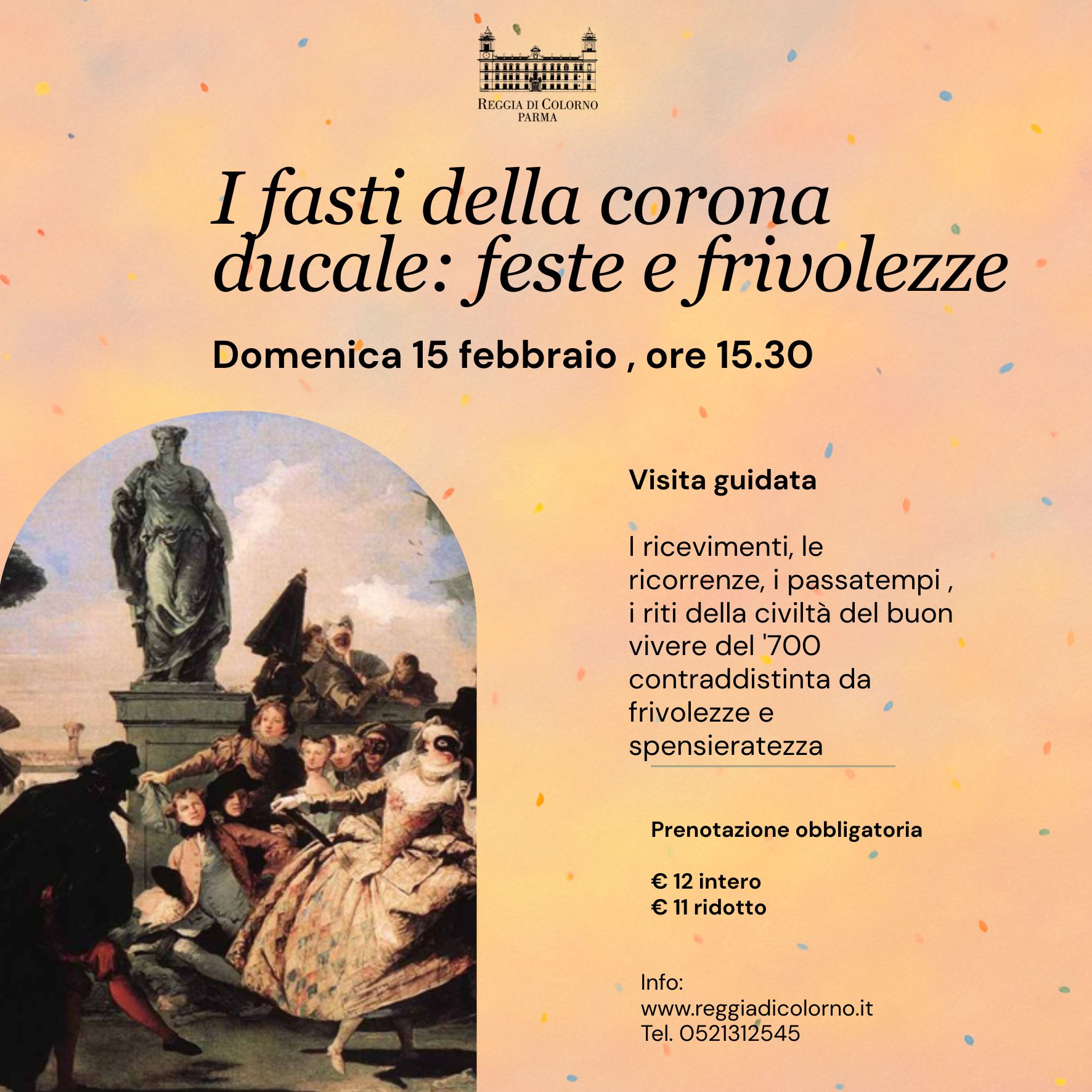 Domenica 15 febbraio, ore 15.30 I FASTI DELLA CORONA DUCALE Attraverso un’insolita visita alle sale del piano nobile della reggia, entreremo nel vivo delle feste di corte al tempo dei […]